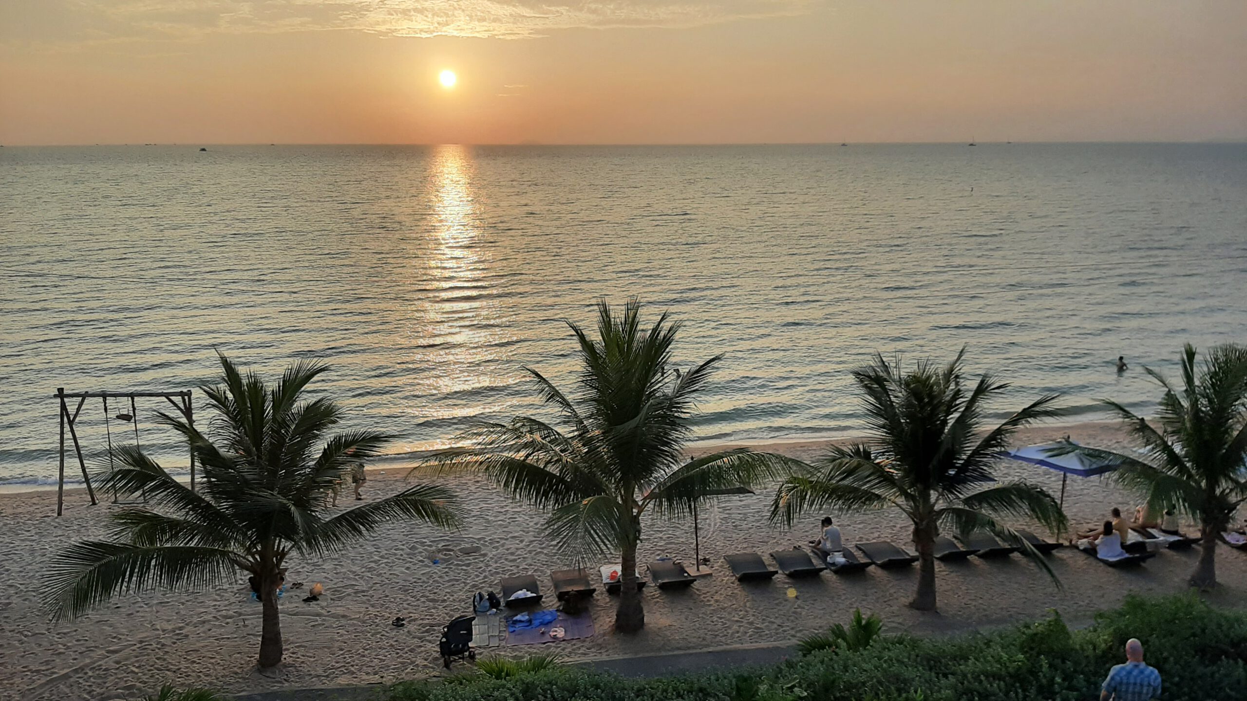 Natuurlijk , zo vanmorgen als iedere dag het vaste ritueel van de vroege ochtend…het lopen en het zwemmen in in de Thaise zee. Het water is nu zo rond de 26 graden en het voelt als een warm bad als je de zee in loopt.