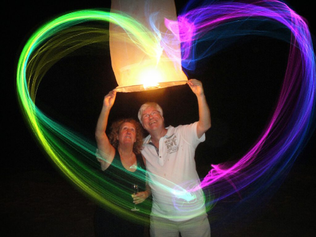 Heerlijk gegeten en ook nog even kunnen bellen met de kids in Nederland en laten zien hoe er hier weer van die grote wensballonnen worden opgelaten.
