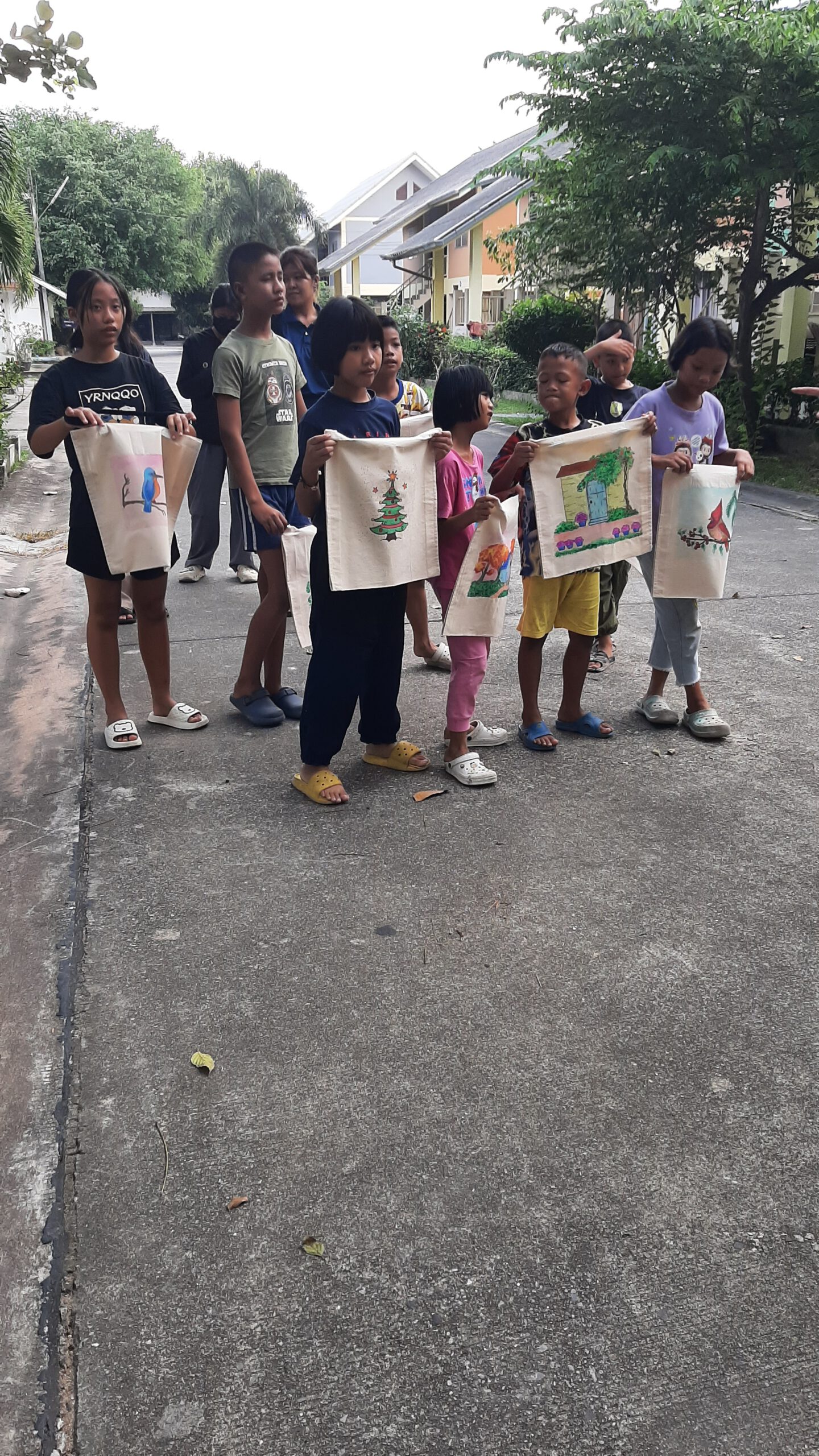 de koeler die we vorig jaar hebben geschonkenEigen voedsel kwekenDe kinderen boden ons de zelfgemaakt tasje aan.