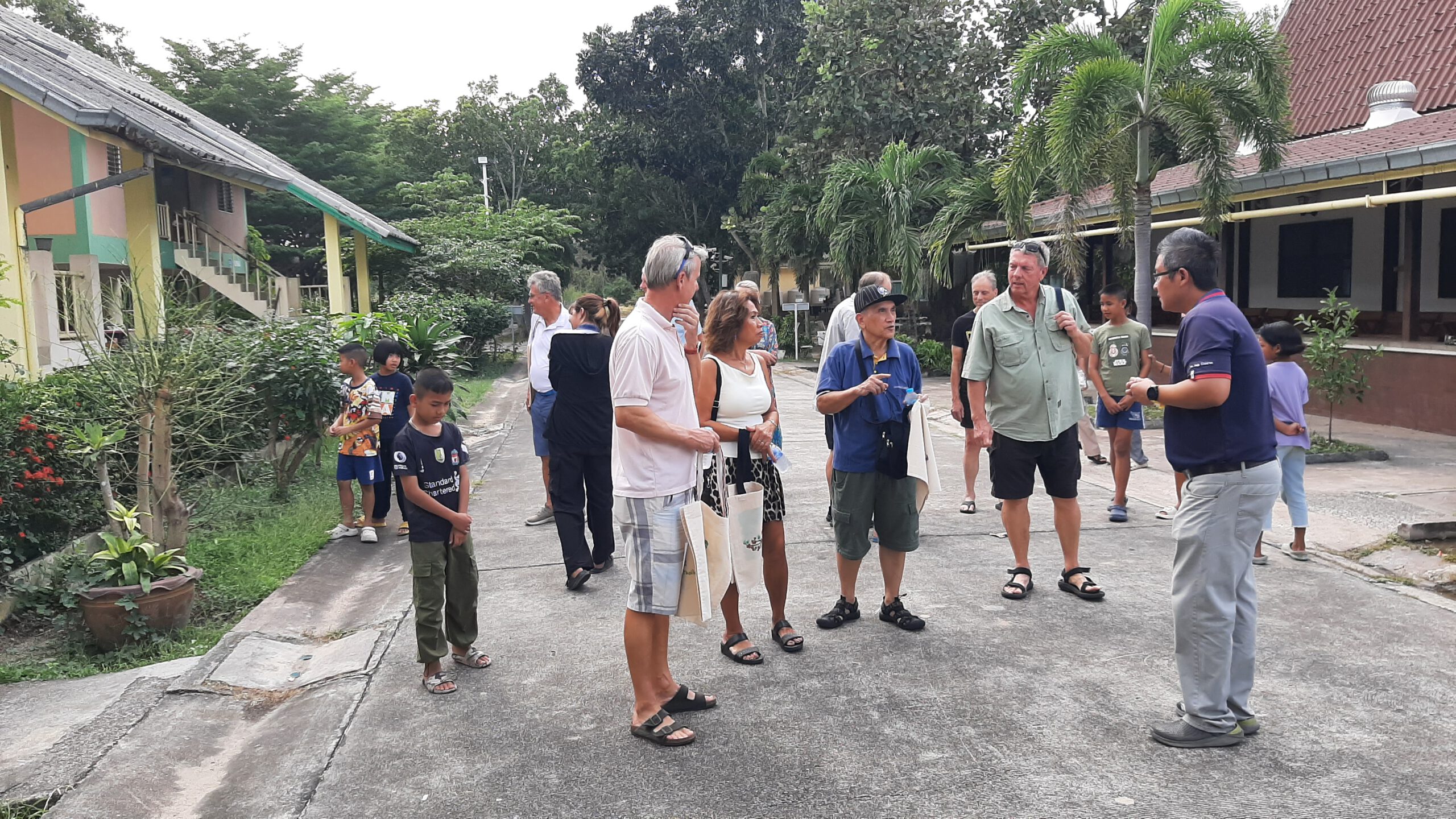 Dit bedacht ik mij toen ik vanmorgen weer na het lopen en lekker zwemmen in zee de krant ging lezen en dan lees je over al die enge dingen in de wereld waar je totaal geen grip op hebt. Waar je in principe heel ver weg van bent en je je eigenlijk ook helemaal niet druk over maakt. En dat deed mij denken aan het bezoek wat we afgelopen zaterdag hebben gebracht aan een kinder tehuis hier vlak in de buurt. een tehuis voor kinderen die slachtoffer zijn van geweld, misbruik en andere trauma,s. Kinderen die je toch met een brede glimlach tegemoed komen en je zelf gemaakt tasjes aanbieden. Een aantal mensen uit de Nederlandse gemeenschap hier rond Pattaya zijn bezig om voor deze organisatie een zonnepanelen project op te zetten en wij waren uitgenodigd om dat met elkaar te bespreken en in gang te zetten. Ik hoop dat ik daar ook mijn steentje in kan bijdragen.