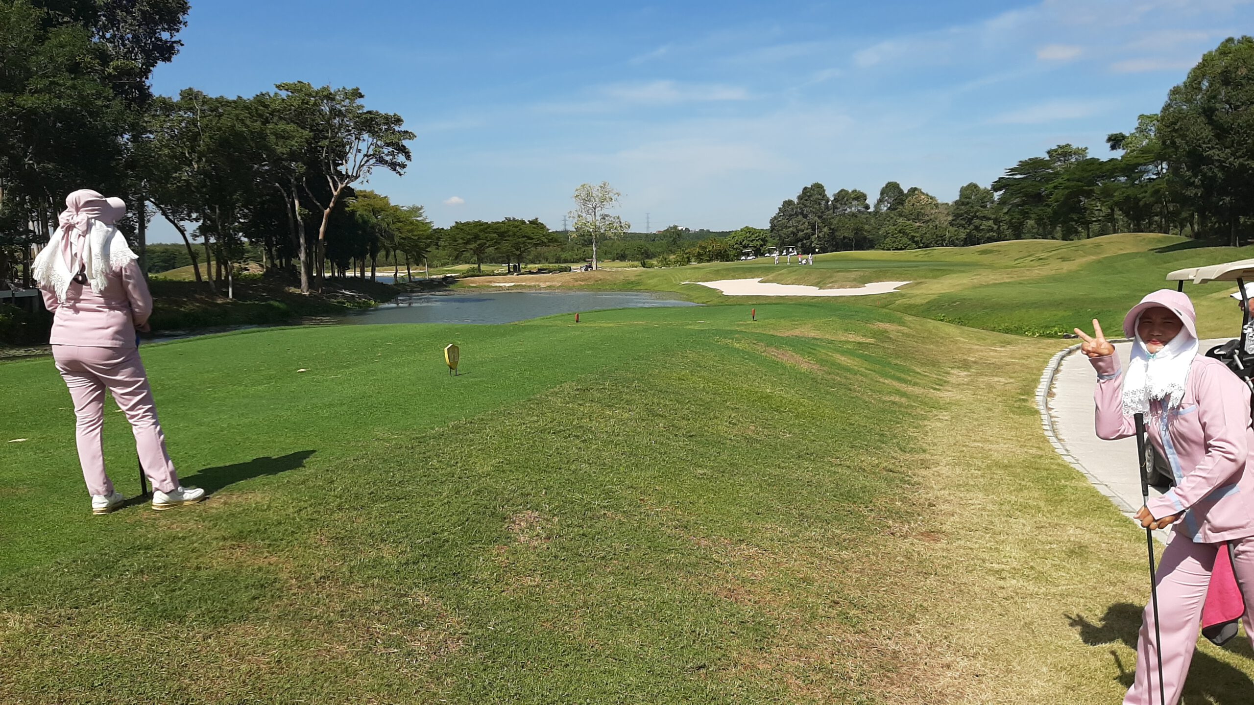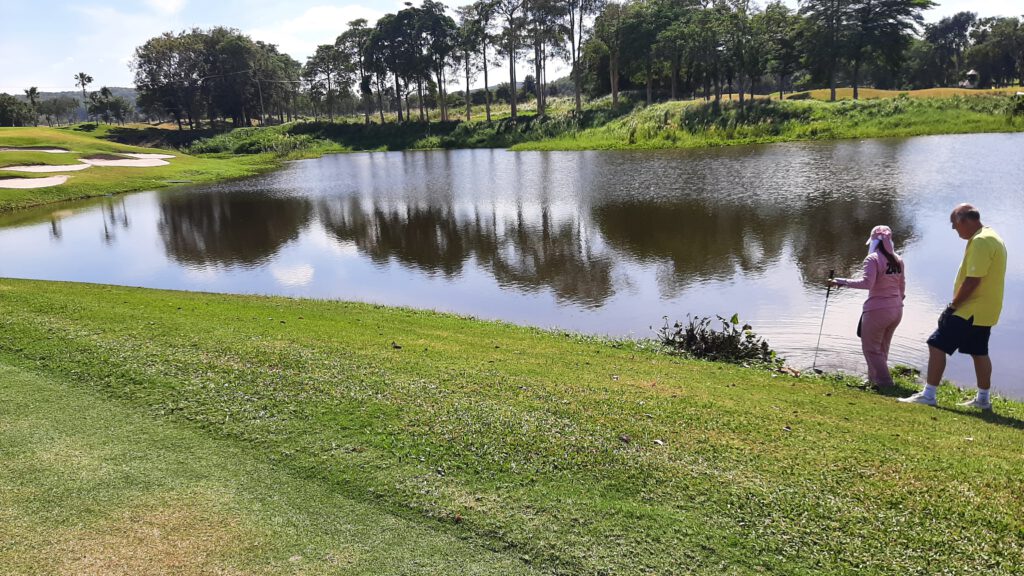 Vanmorgen op 24 december gewoon even lekker lopen , de dames waren bezig het appartement weer helemaal overhoop aan het halen en te kuizen. En ik neem dan de tijd om heerlijk naar de massage te gaan en alle spieren weer soepel te laten maken. Begin van de middag samen met Peter naar de golfbaan en daar zonder buggy….9 holes helemaal gelopen. Je begint nu wel te merken dat de temperatuur zo rond de middag dik boven de 32 graden is en dat de hoeveelheid water die je drinkt wel steeds meer gaat worden. We moesten ook nog even plaats maken voor een buffel…die zo nodig nog even met zijn lunch bezig was.
