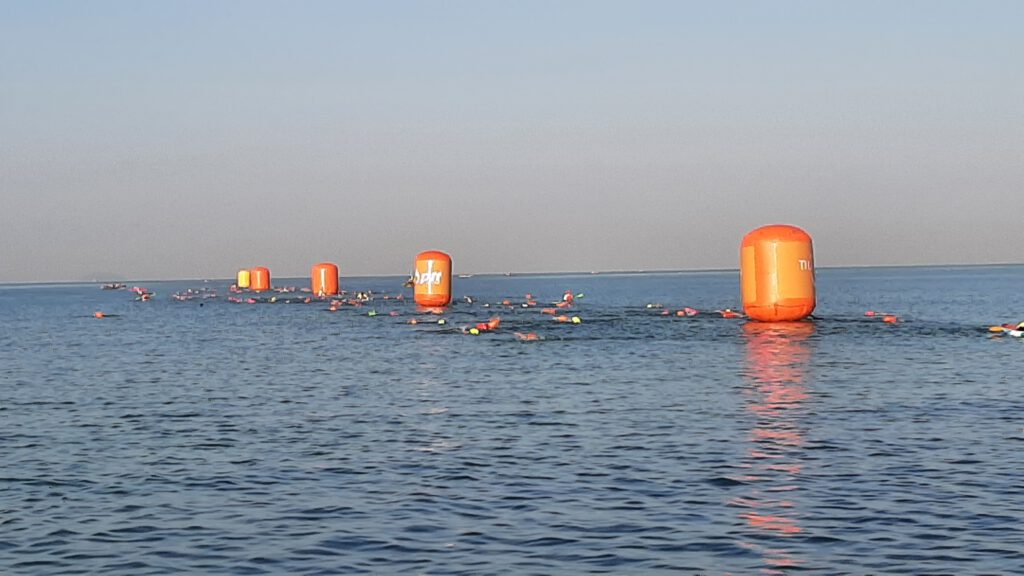 Maar vanmorgen om 6 uur waren de eerste klanken al weer aanwezig en om half zeven gingen de eerste zwemmers en zwemsters het water in.