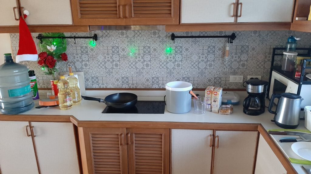 Vanmiddag komen de vrienden proeven en met een heerlijk glas wijn erbij zal dat wel weer heel gezellig worden. Daarna gaan we met z’n alleen naar een dakterras van een hotel hier dichtbij en kunnen vandaar het grote vuurwerk van Pattaya weer prachtig zien.