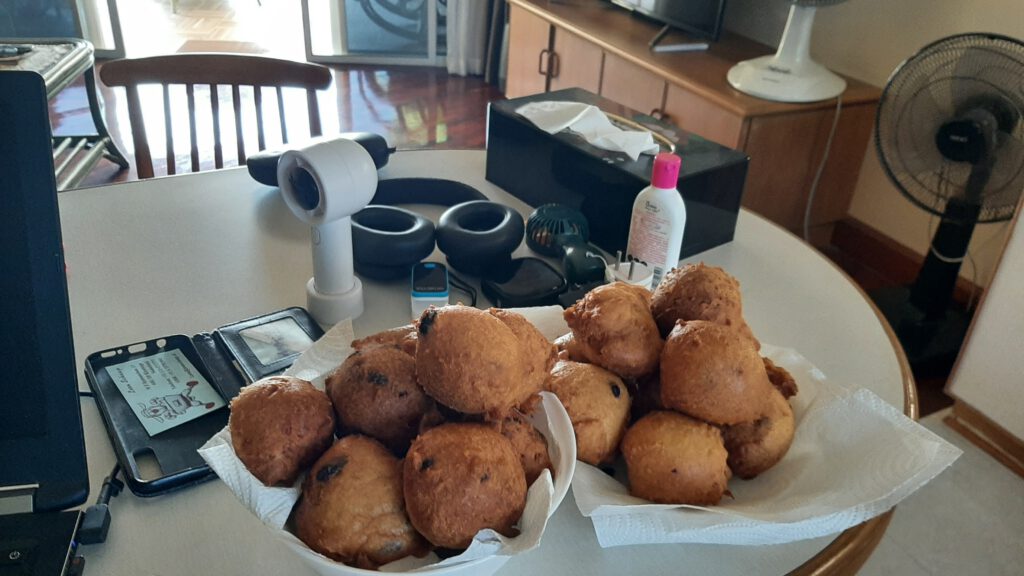 Het ging weer op rolletjes en ik hoor Ron de nu helaas overleden Amerikaanse vriend nog steeds roepen: The best oliebollie from Jeannette.
