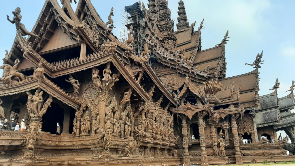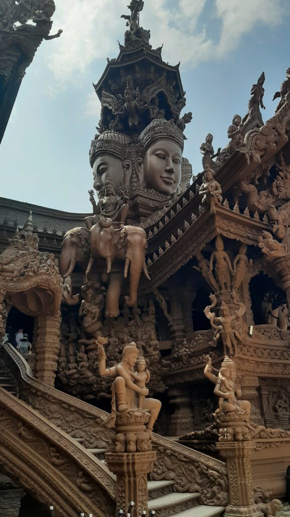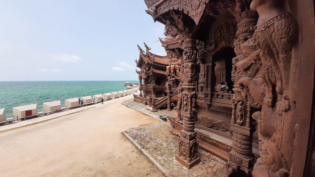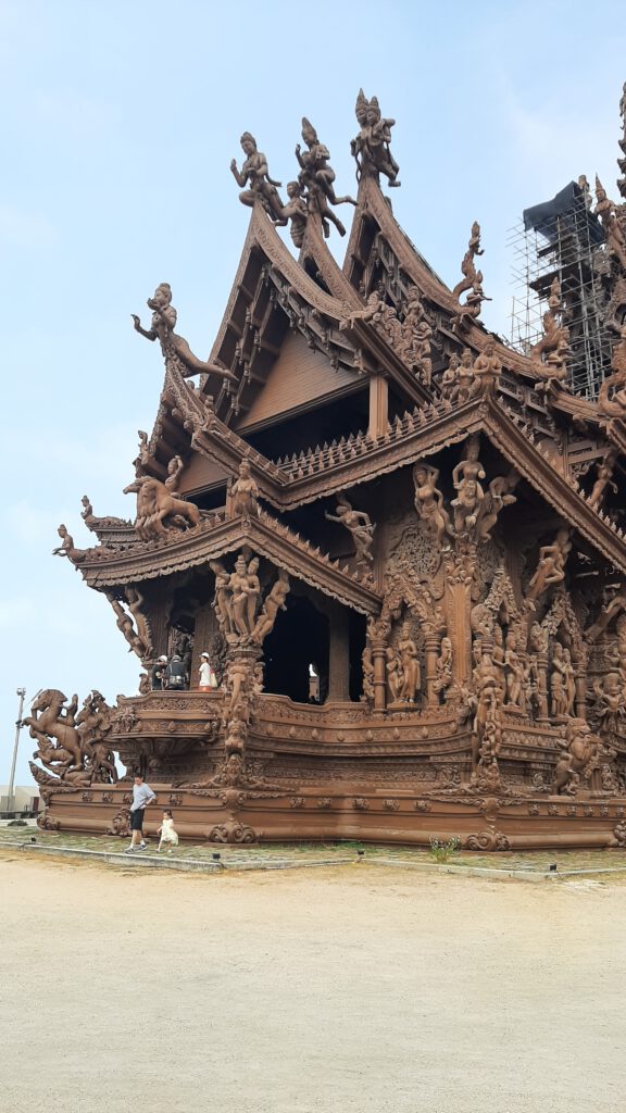 Nu Jan hier op bezoek is merk ik dat het nu nog duidelijker wordt dat ik hier leef / woon. En dat er een groot verschil is als je hier voor een paar dagen bent of dat je hier bijna een half jaar rond loopt. Bij mij is er totaal geen behoefte om naar de ….zo genaamde.. Hylights in en rond Pattaya te gaan. Maar de afgelopen dagen nu samen met Jan toch weer op pad en ons begeven in de drukte en uitgaans leven van Pattaya. The Sanctuary of Truth in Noord Pattaya mag daar niet in ontbreken. Een eeuwen oude volkomen houten tempel met de prachtigste beeldhouw werken en versieringen.