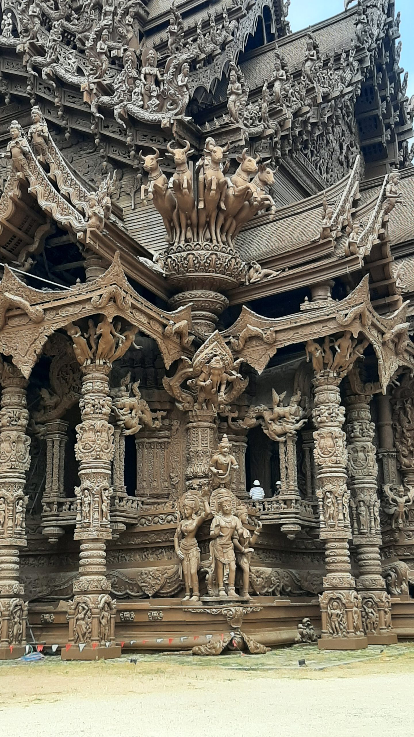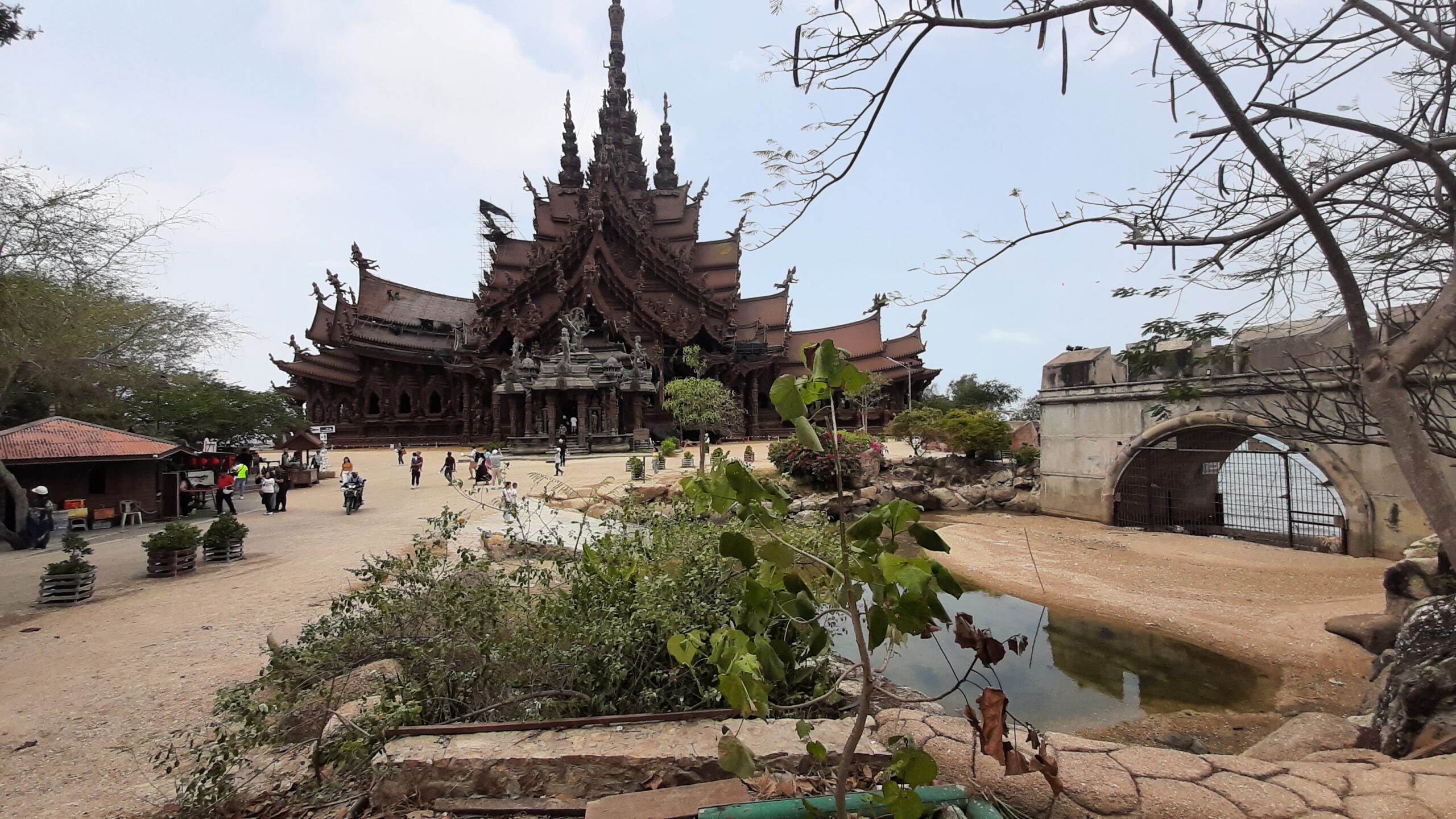 Nu Jan hier op bezoek is merk ik dat het nu nog duidelijker wordt dat ik hier leef / woon. En dat er een groot verschil is als je hier voor een paar dagen bent of dat je hier bijna een half jaar rond loopt. Bij mij is er totaal geen behoefte om naar de ….zo genaamde.. Hylights in en rond Pattaya te gaan. Maar de afgelopen dagen nu samen met Jan toch weer op pad en ons begeven in de drukte en uitgaans leven van Pattaya. The Sanctuary of Truth in Noord Pattaya mag daar niet in ontbreken. Een eeuwen oude volkomen houten tempel met de prachtigste beeldhouw werken en versieringen.