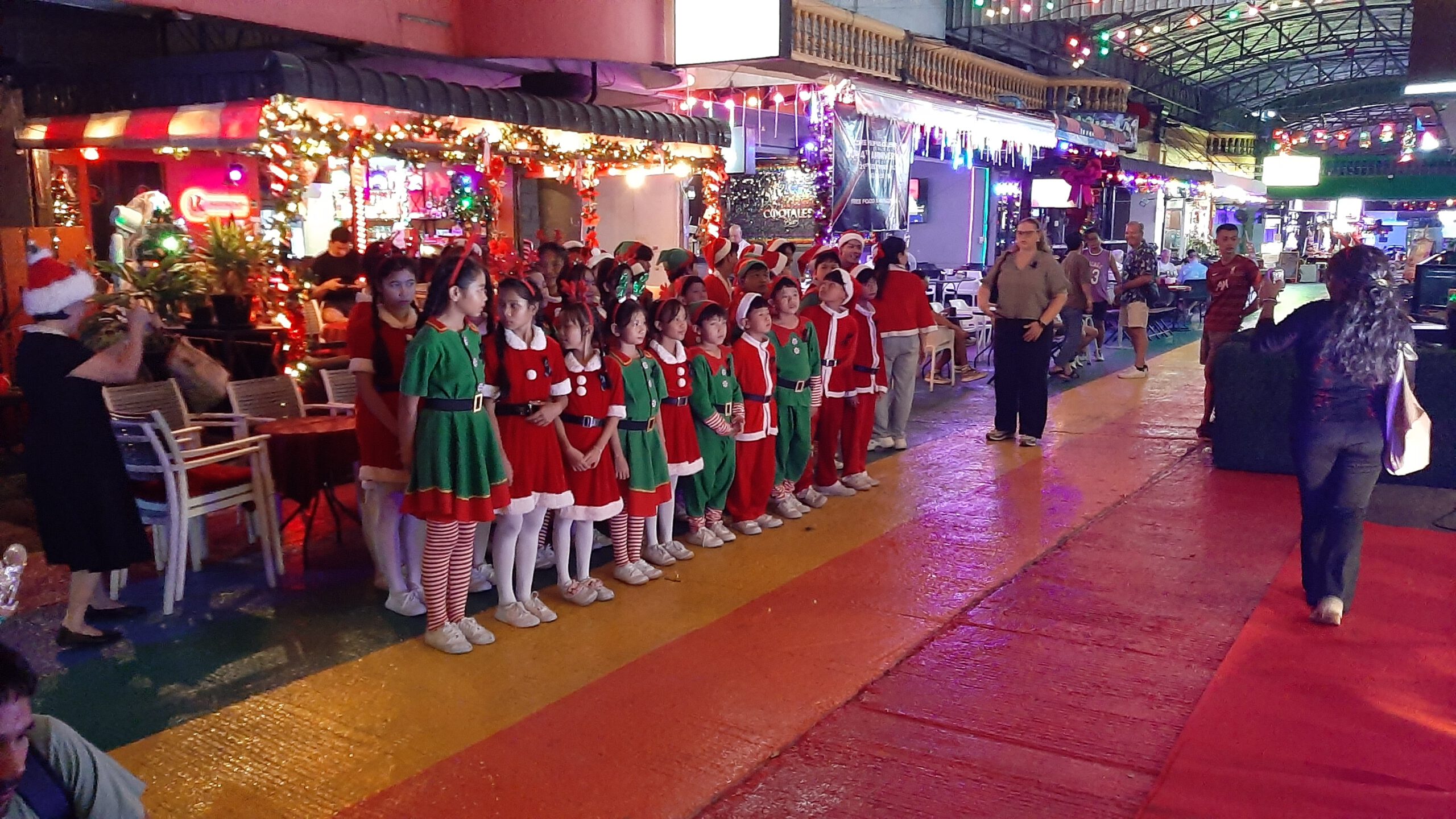 Afgelopen donderdagavond hebben we hier al het jaarlijkse kerstdiner gehad en dat was weer geweldig georganiseerd en erg lekker eten. Het hele restaurant is dan afgehuurd door de Nederlandse vereniging en je zit dan samen met alleen Nederlandse mensen , sommige natuurlijk met aanhang , aan tafel. Omdat we met de NVTP (Nederlandse Vereniging Thailand ( afdeling Pattaya) al druk bezig zijn om in het kindertehuis van Child Protection and Development Center (CPDC) te Hua Yai een uitbereiding te realiseren van het aantal zonnepanelen werd ook deze avond aangegrepen om even met de pet rond te gaan. En heel erg leuk was dat een grote groep kinderen voor ons een aantal kerstliedjes kwam zingen.