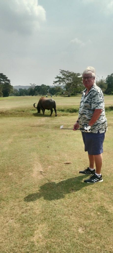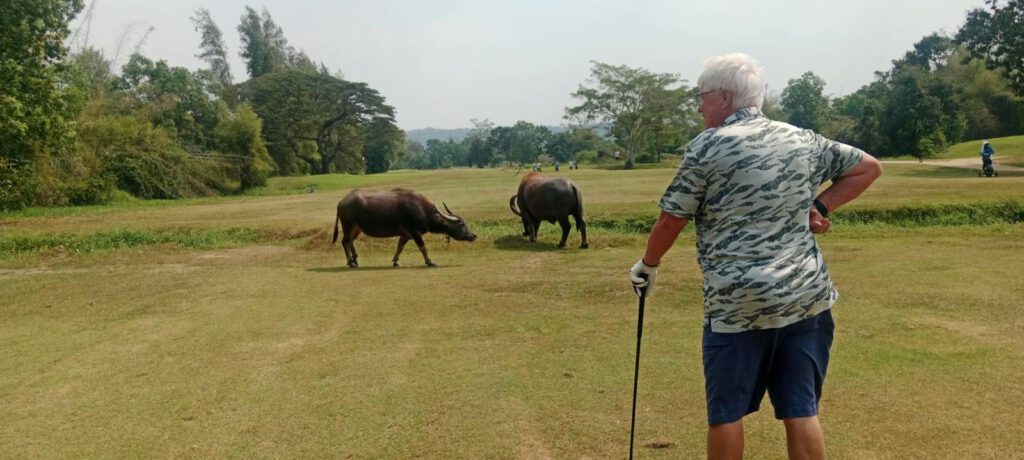 Lekker een paar rondjes op de golfbaan en daar wel even moeten wachten tot de buffels voorbij waren gelopen…